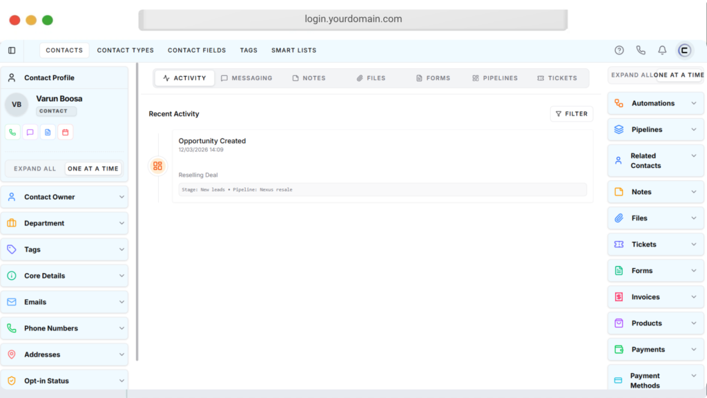 All in one dashboard to Manage leads, clients, sales, and automations from a fully customizable dashboard designed to give you a clear view of your entire business in one place. π